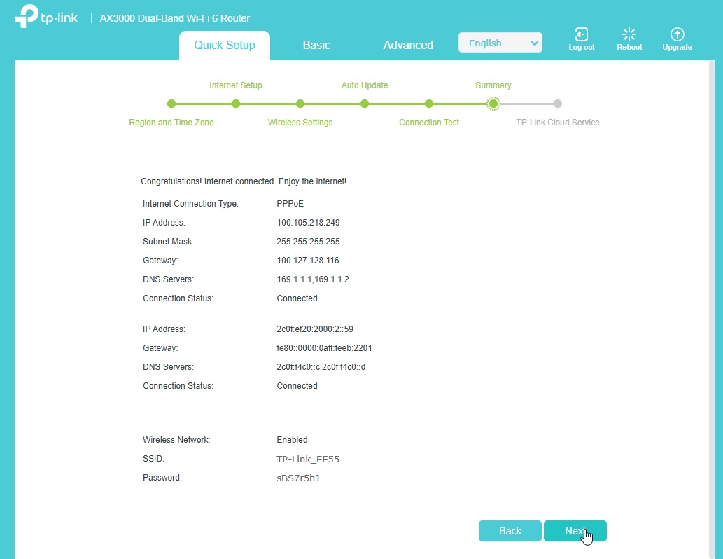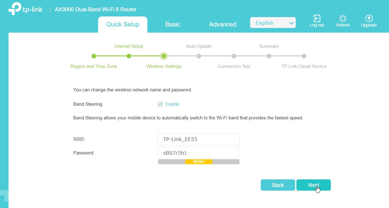 On the next page, you can set your own Wi-Fi name and password & click next.